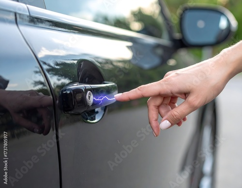 車体で発生した静電気が指へ放電する様子