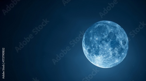 Full moon glowing softly on clean dark blue gradient background, minimalist aesthetic, product mockup concept.