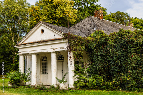 A neglected classical-style building. Kurozweki, Swietokrzyskie Province, Poland