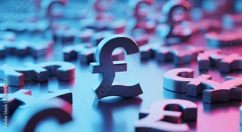 The Symbol Of British Pound Sterling Currency Among Other Global Currency Symbols In A Futuristic Lighting Environment Representing Financial Markets