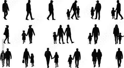 Silhouette vector illustration of parents walking with children showing family love, parenting unity, togetherness, lifestyle, and caring relationship concept design