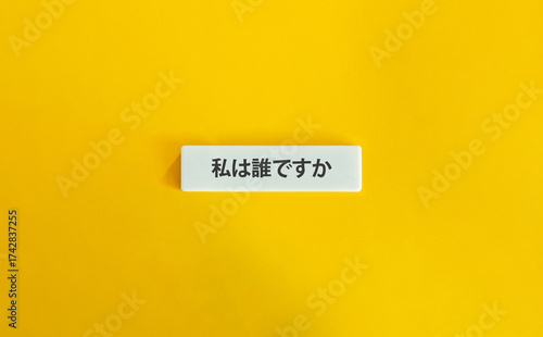 白い文字タイルの「私は誰ですか」バナー、黄色背景のミニマルデザイン