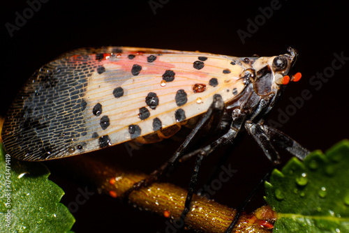Closeup of spotted lanternfly, Lycorma delicatula.