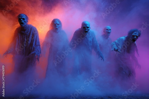 Enchanting mysteries: embracing halloween spirit amid chilling celebrations. Empty space. Chilling extravaganza: elaborate costumes and spooky atmosphere. Studio shot. Minimal design.