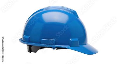 Isolated blue hardhat or safety helmet for construction worker on studio no background