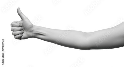 Isolated arm with thumbs up gesture showing approval, agreement or positive feedback