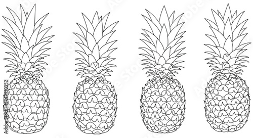 Four detailed line art pineapples displayed vertically in a simple pattern