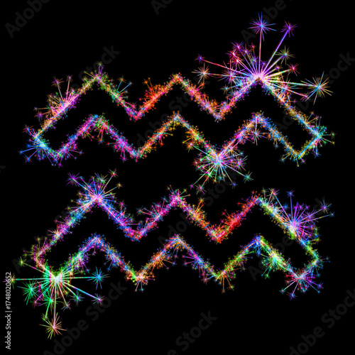Kolorowe zimne ognie i fajerwerki układające się w kształt znaku zodiaku Wodnik.