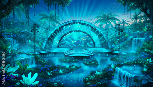 underwater world in the ocean song stage. Europe Song Contest stage. fiber optics background with lots of light spots