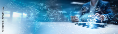 Businessman using tab and analysis budget data. financial planning strategies, expense tracking systems, revenue forecasting models, cost optimization frameworks, corporate expenditure analysis