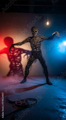 Eerie Zombie Figure in Dramatic Lighting with Shadow and Fog.