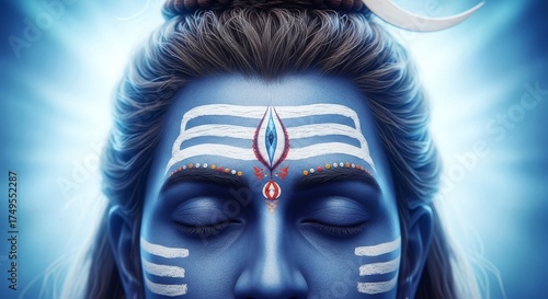 Lord Shiva Meditation Divine Blue Face Third Eye Enlightenment