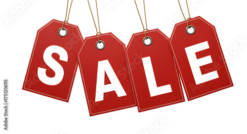 Red hanging sales tags, isolated on transparent cutout background, cut out, png