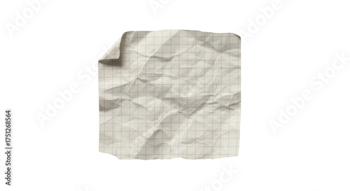 Crumpled piece of squared page isolated element for scrapbooking
