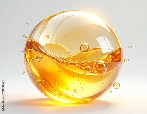 美容オイル成分が溶け込んだ透明なスキンケアイメージの水滴 球体 ジェネレーティブAI