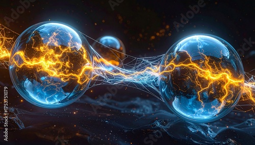 Szklane kule powiązane w sieć za pomocą połączeń elektrycznych.