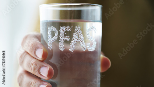 PFAS in drinking water, toxic contamination risk, hand holding glass, invisible chemical danger, health hazard alert, polluted tap water, forever chemicals, unsafe consumption