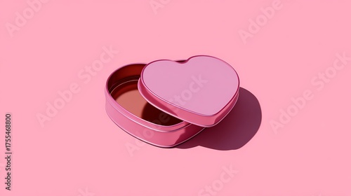 Open Heart-Shaped Tin on a Pink Background / ピンクの背景に置かれたハート型の缶