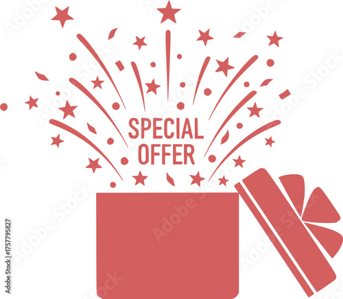 Special Offer Gift Box Silhouette - Open Present Box with Confetti Vector for Black Friday Promotion & Surprise