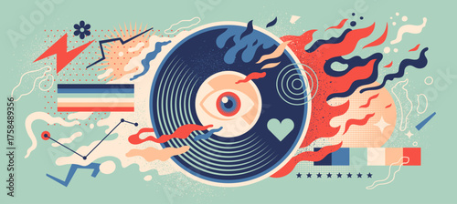 Abstract background in a grungy retro style with a vinyl. Vector illustration.