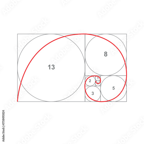 Golden ratio frame on white background, vector. Fibonacci circles, vector illustration.