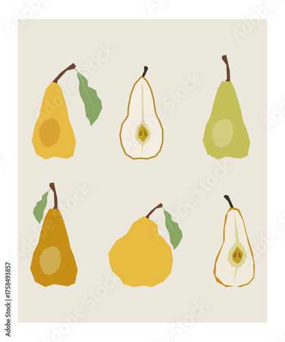 Pears fruits Food illustration. Postcard with a pear Modern design Vector