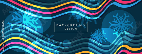 Abstract background with waves and snowflakes in vector.