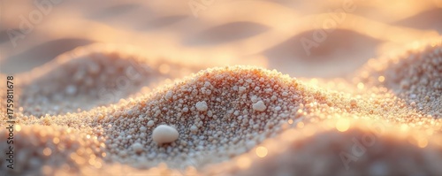 Close-up shot of fine, light-colored sand shimmering and reflecting light, evoking a feeling of levity and playfulness; perfect for whimsical or joyful themes , happy, particle