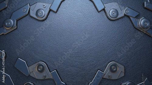 Mechanically Designed Background Featuring Metallic Parts on a Leather Texture with a Unique Link Pattern Creating a Modern Industrial Look