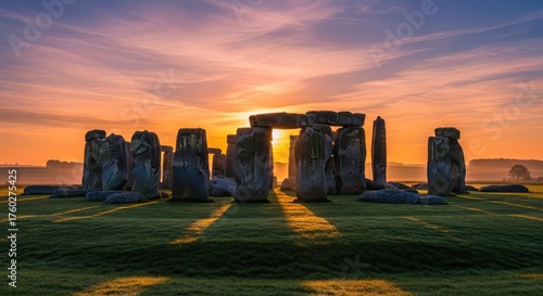 Stonehenge at Sunset - A Majestic Prehistoric Monument.