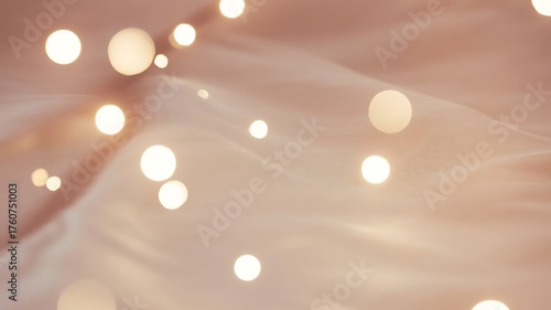 Soft glowing orbs floating above delicate fabric creating a gentle romantic aesthetic
