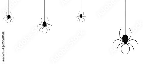 Four Black Spiders Hanging from Silk Threads Illustration