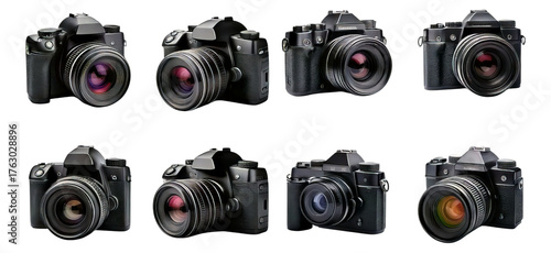 Various High-Quality Digital Cameras Showcased on a Clean Background, Isolated on Transparent, white background