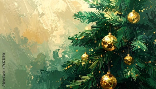 Fundo natal, árvore de natal, plano de fundo, papel de parede, pintura, enfeite de natal, feriado, luz, dourado, verde, fundo natalino, ilustração, óleo em tela, cultura, dezembro, alegre, pinhas