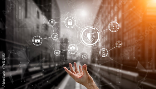 #323932500Business, Technology, Internet and network concept. Young businessman working on a virtual screen of the future and sees the inscription: Audit