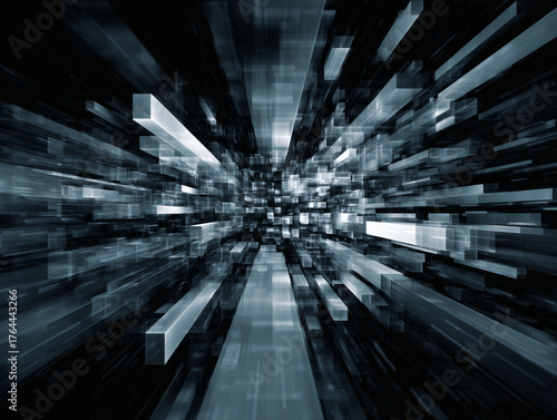 デジタル空間を駆け抜ける無数の立方体構造の抽象的なテクノロジー背景画像