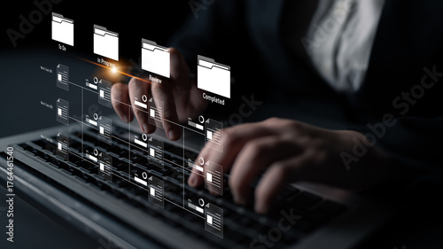 Task workflow system showing document progress through stages. Task tracking improves productivity, ensures visibility, task tracking supports planning, and task tracking manages status. Latch