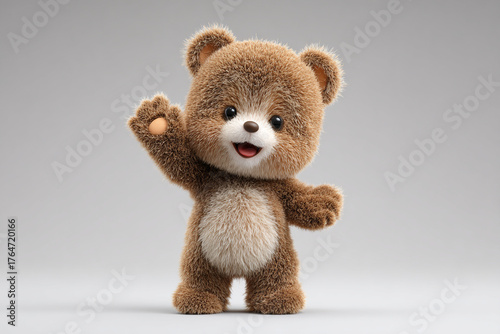 Delightful plush teddy bear character waving hello and smiling, perfect for children's books, greeting cards, and adorable social media content that spreads joy and warmth