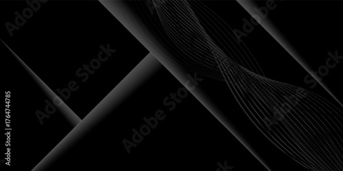 black background with shiny diagonal dynamic lines wallpaper. Black and white abstract tech geometric linear background