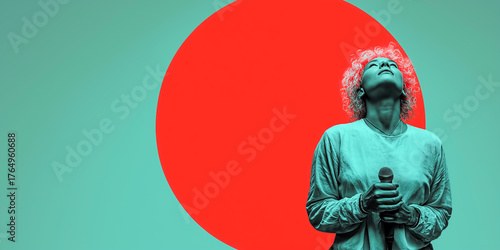 マイクを手に歌うボーカリストのポップアート|ライブ・広告用背景