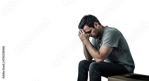 Sad Man Sitting on Cardboard Box Depression Concept creative illustration featuring psychology, dejected, isolation, depressed, therapy,