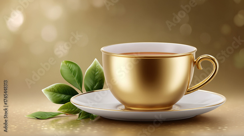 茶葉とゴールドカップをあしらった上品でやわらかな光の背景素材