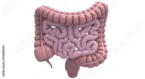 Anatomy of the large and small intestines, showcasing the human digestive system.