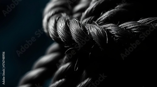 Close-up of black rope texture - dramatic monochrome macro shot highlighting strength, detail, and minimalist power