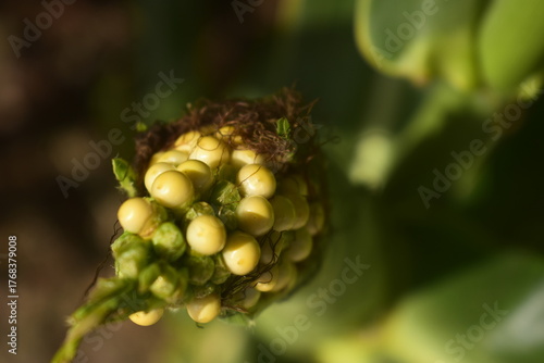 Crescimento anormal de espigas de milho, caroço amarelo do sabugo fora da casca