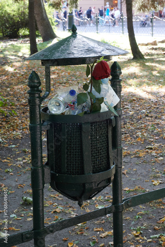 Róża w koszu na śmieci, złamane serce