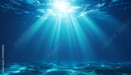 海 水中 光 光芒 水面 波紋 海底 砂 青 ブルー アクア 深海 神秘的 幻想的 透明感 静寂 広大 潜水 ダイビング 生命