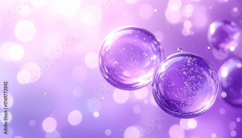 穏やかな紫の光に包まれたぷるぷる球体 ナイトケア美容成分イメージ ジェネレーティブAI