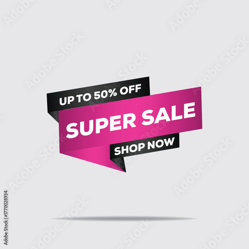 Super Sale Tag Collection – 50% Discount Black, Pink & White Labels – Vector Illustration