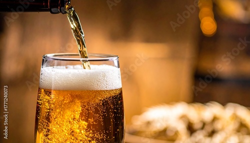 Close Up Pouring Beer with Foam and Bubbles